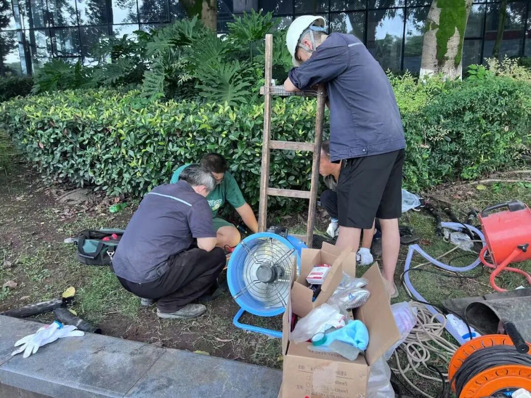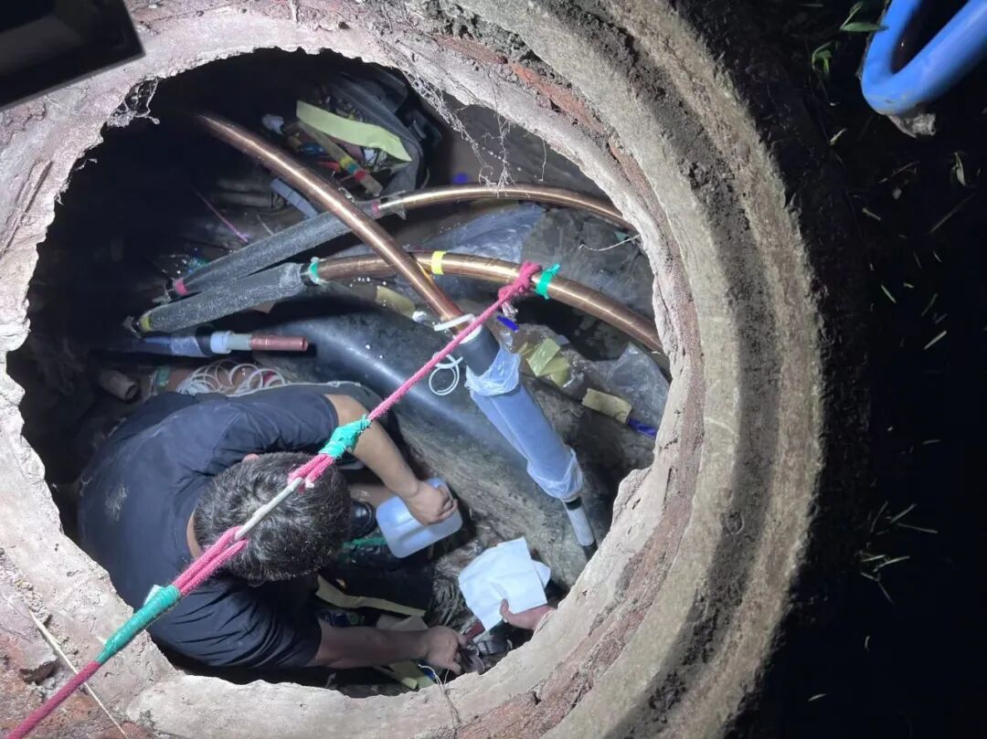 險(xiǎn)情就是命令!能投公司迅速響應(yīng),第一時(shí)間安排運(yùn)維部全體人員組成應(yīng)急搶修隊(duì)伍,頂著風(fēng)雨火速奔赴現(xiàn)場(chǎng)。抵達(dá)現(xiàn)場(chǎng)后,搶修隊(duì)伍立即開展現(xiàn)場(chǎng)勘察,由線路末端向電源端逐一檢查每個(gè)電纜井,于11時(shí)55分左右找到故障點(diǎn)后立即通知電力公司配調(diào)“10kV黃酒四線線路轉(zhuǎn)檢修”。在運(yùn)維部經(jīng)理王進(jìn)指揮下,搶修人員立即根據(jù)現(xiàn)場(chǎng)情況制定搶修方案,備齊電纜中間頭、潛水泵等設(shè)備設(shè)施趕赴現(xiàn)場(chǎng)更換受損的中間頭。隨后,經(jīng)過10個(gè)多小時(shí)的努力,排查消除了故障,于23時(shí)32分恢復(fù)線路供電,確保了園區(qū)企業(yè)的正常生產(chǎn)。目前園區(qū)電網(wǎng)整體運(yùn)行安全平穩(wěn)。